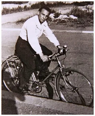 Achille Muller sur son vélo • © photo extraite de « Nos vertes années » / Achille Muller