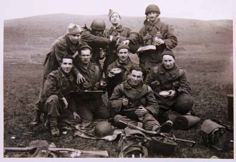 Achille Muller (au premier rang) au sein de la section Marienne lors de leur entraînement en Écosse en 1943. • © photo extraite de « Nos vertes années » / Achille Muller