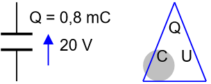 - C(F) = Q(C) / U(V) = 0,0008 / 20 = 0,00004 F = 40 µF