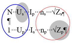 Pour utiliser le tableau, seules les valeurs entourées d’un pointillé rouge seront retenues : produit en croix = produit de la 2ème diagonale (√Zs x np dans notre exemple) divisé par la valeur opposée (ns dans notre exemple) : √Zp = √Zs x np / ns ; en élevant au carré : Zp = Zs x np² / ns² = 200 x 80² / 40² = 200 x 6400 / 1600 = 800.